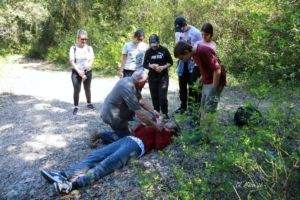 Profitant d’une pause ombragée, nous avons parlé « gestes qui sauvent » et montré la PLS . Puis nos itinéraires se sont séparés, eux regagnant leur véhicule par un chemin balisé, chantant à tue-tête « tous ensemble, tous ensemble » et nous poursuivant notre circuit, quelque peu étourdis par ce vent de fraîcheur de cette jeunesse peut être « différente » mais ô combien attachante. Merci les jeunes qui par vos rires et vos remarques encore juvéniles nous avez fait oublier, un moment, nos cheveux blancs et nos articulations douloureuses.
