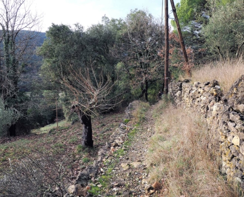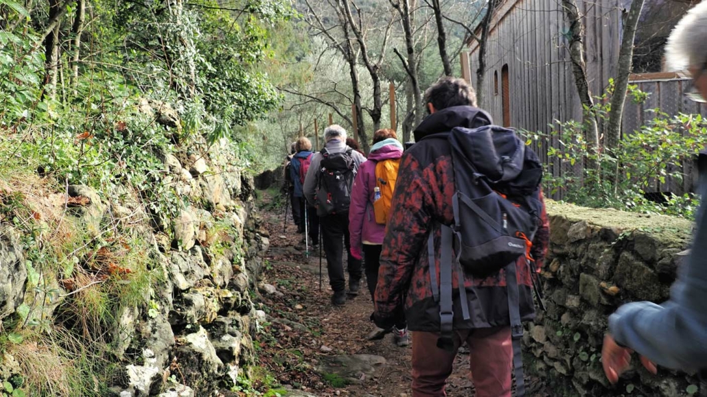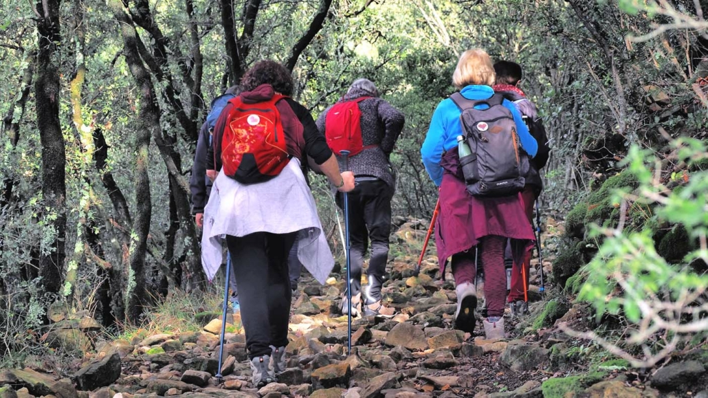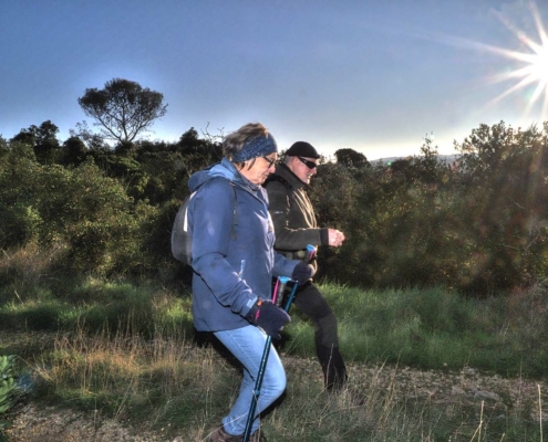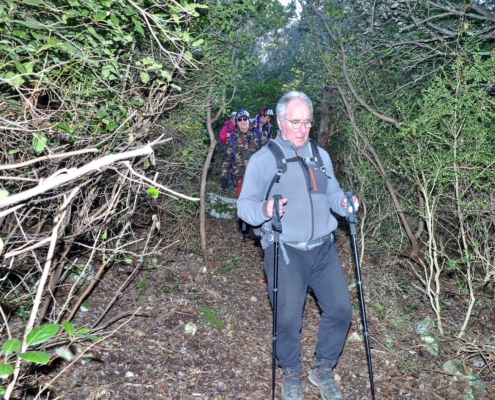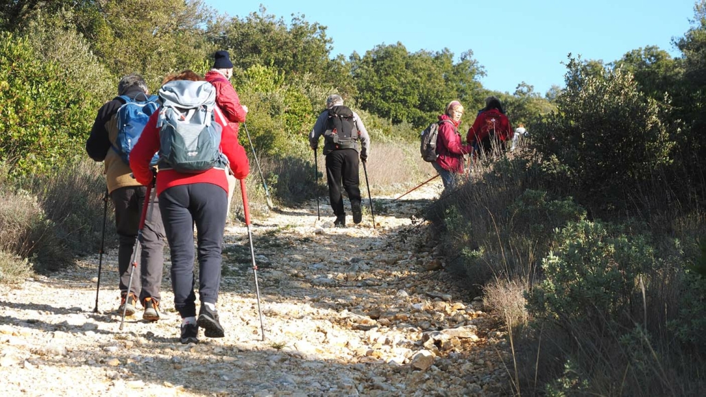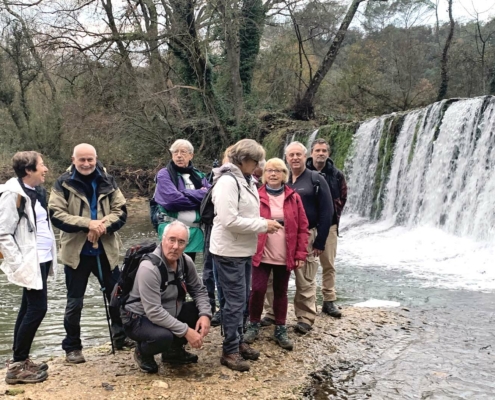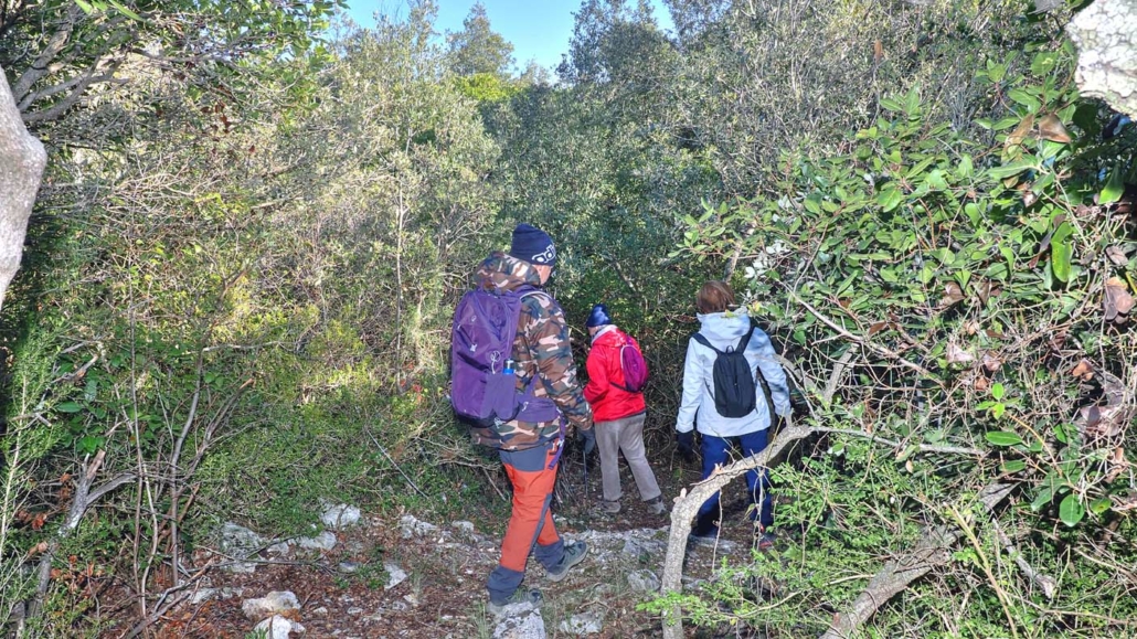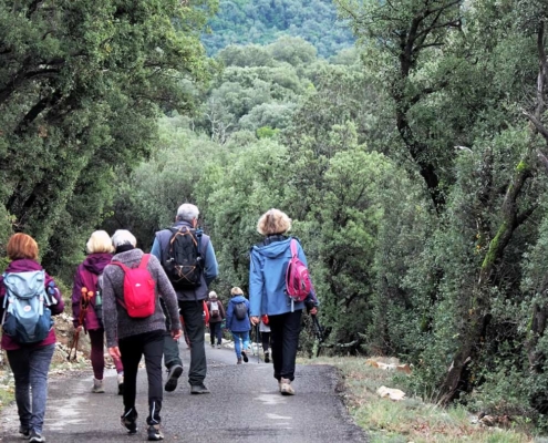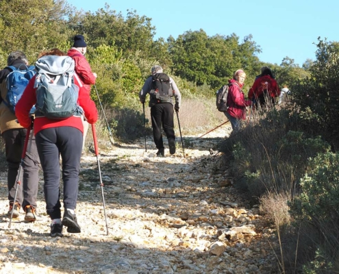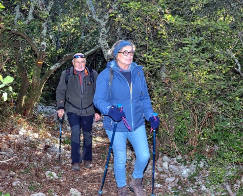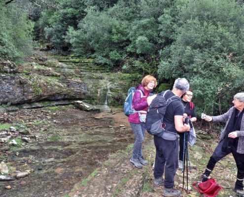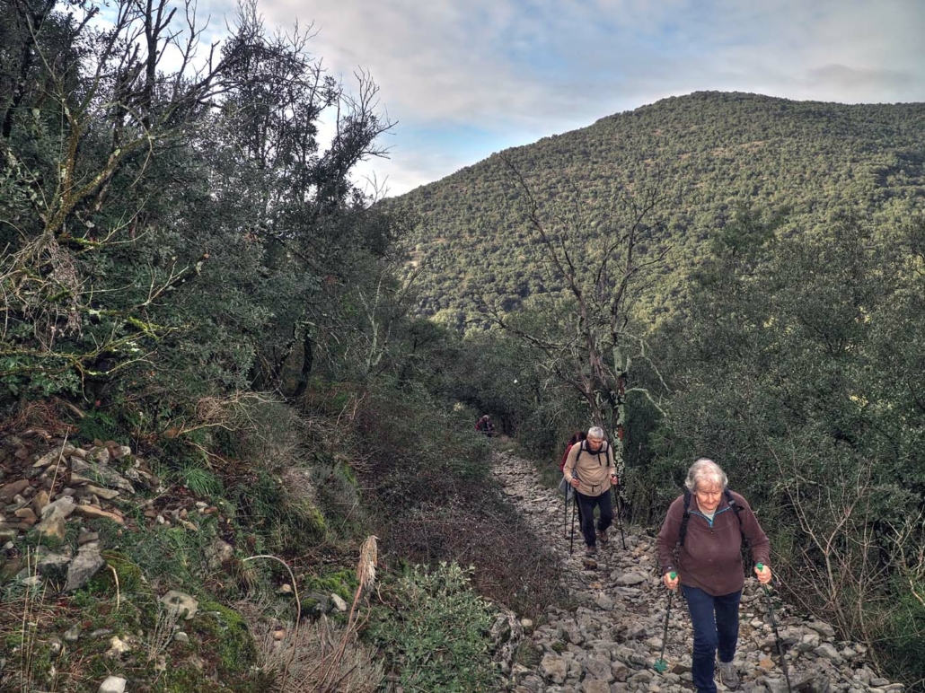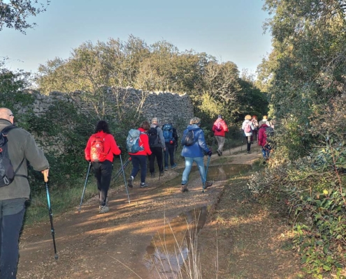 L’après-midi le groupe se scinde en deux : ceux qui ont choisi la version « cool » continueront sur la voie verte avec quelques variantes d’observation et au retour une autre rallonge vers St Hippolyte du Fort pour faire un peu plus long et ne pas avoir à attendre trop longtemps le deuxième groupe qui avait opté pour la version « hard », avec montée au Ranc de Banes et retour vers la voie verte après avoir traversé la « Baume Clauside », sorte de grotte à deux entrées qui permet de franchir un « à-pic » des falaises.
