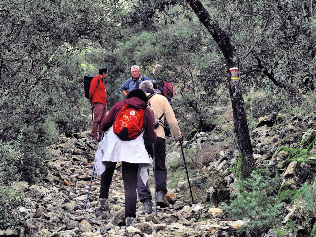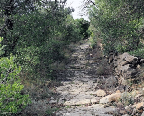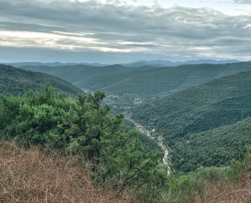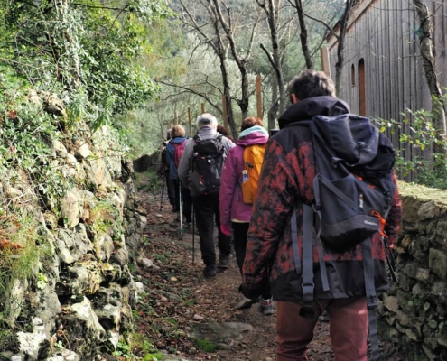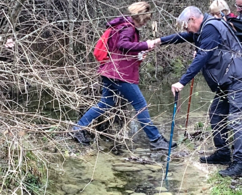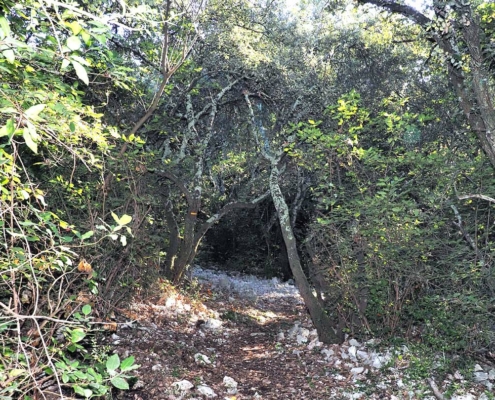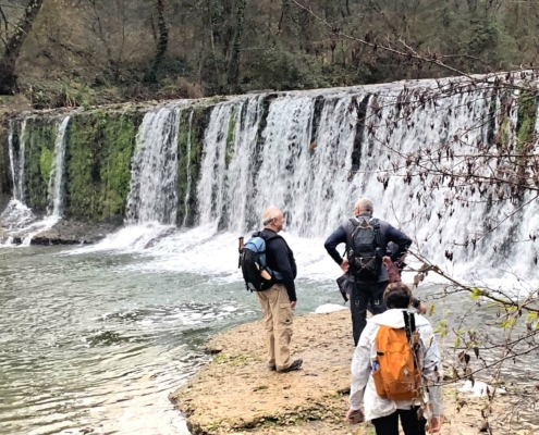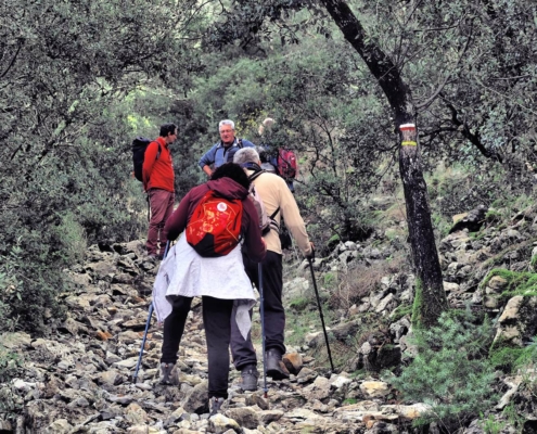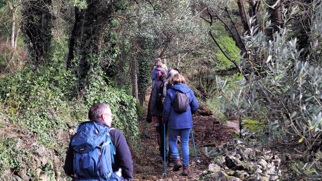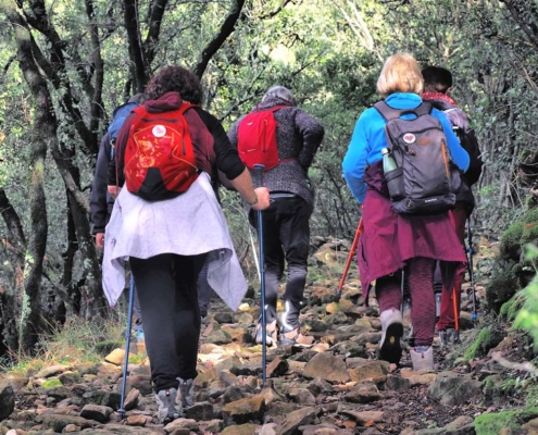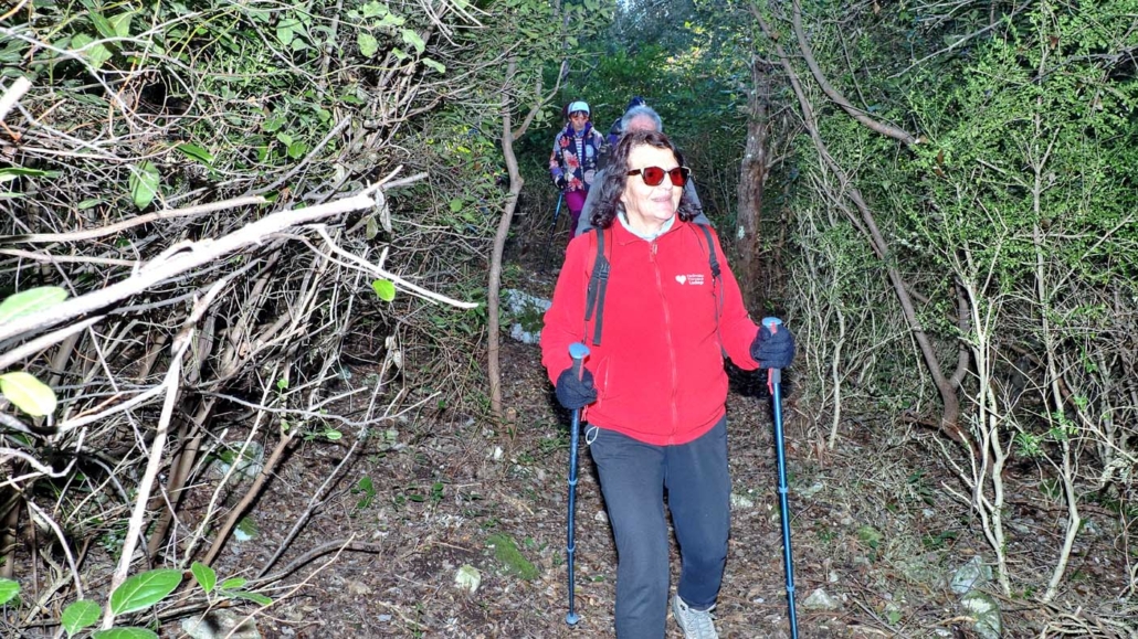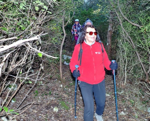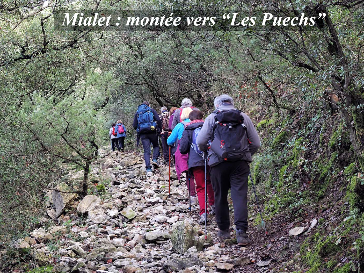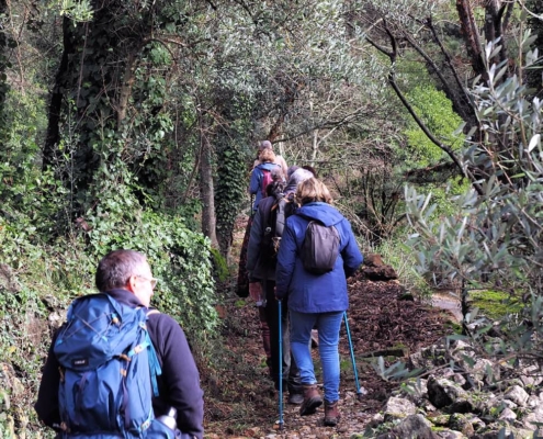 L’après-midi le groupe se scinde en deux : ceux qui ont choisi la version « cool » continueront sur la voie verte avec quelques variantes d’observation et au retour une autre rallonge vers St Hippolyte du Fort pour faire un peu plus long et ne pas avoir à attendre trop longtemps le deuxième groupe qui avait opté pour la version « hard », avec montée au Ranc de Banes et retour vers la voie verte après avoir traversé la « Baume Clauside », sorte de grotte à deux entrées qui permet de franchir un « à-pic » des falaises.