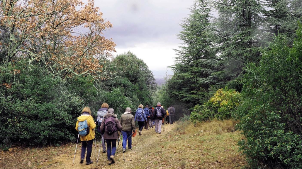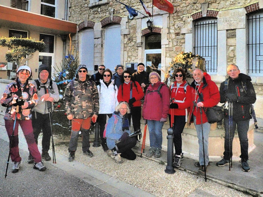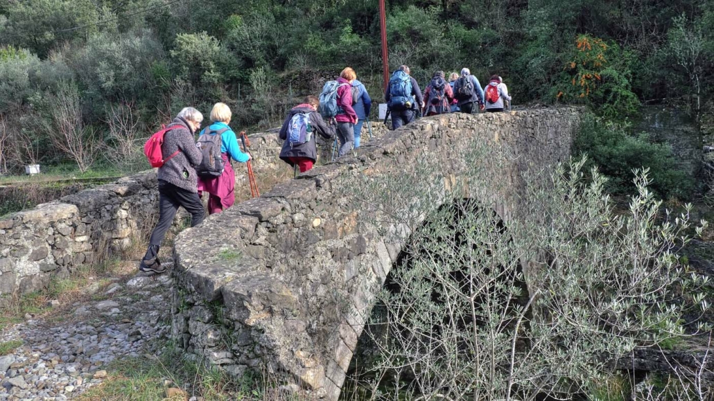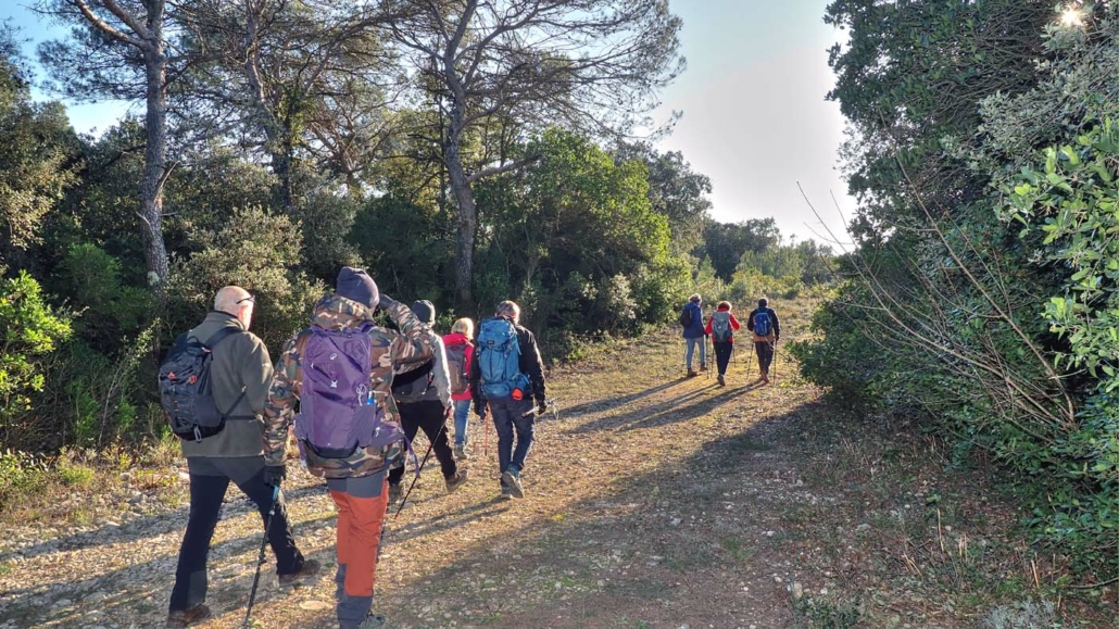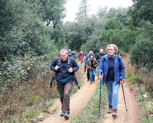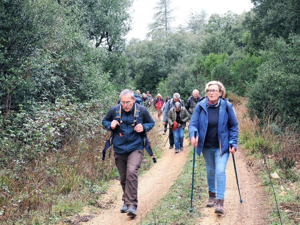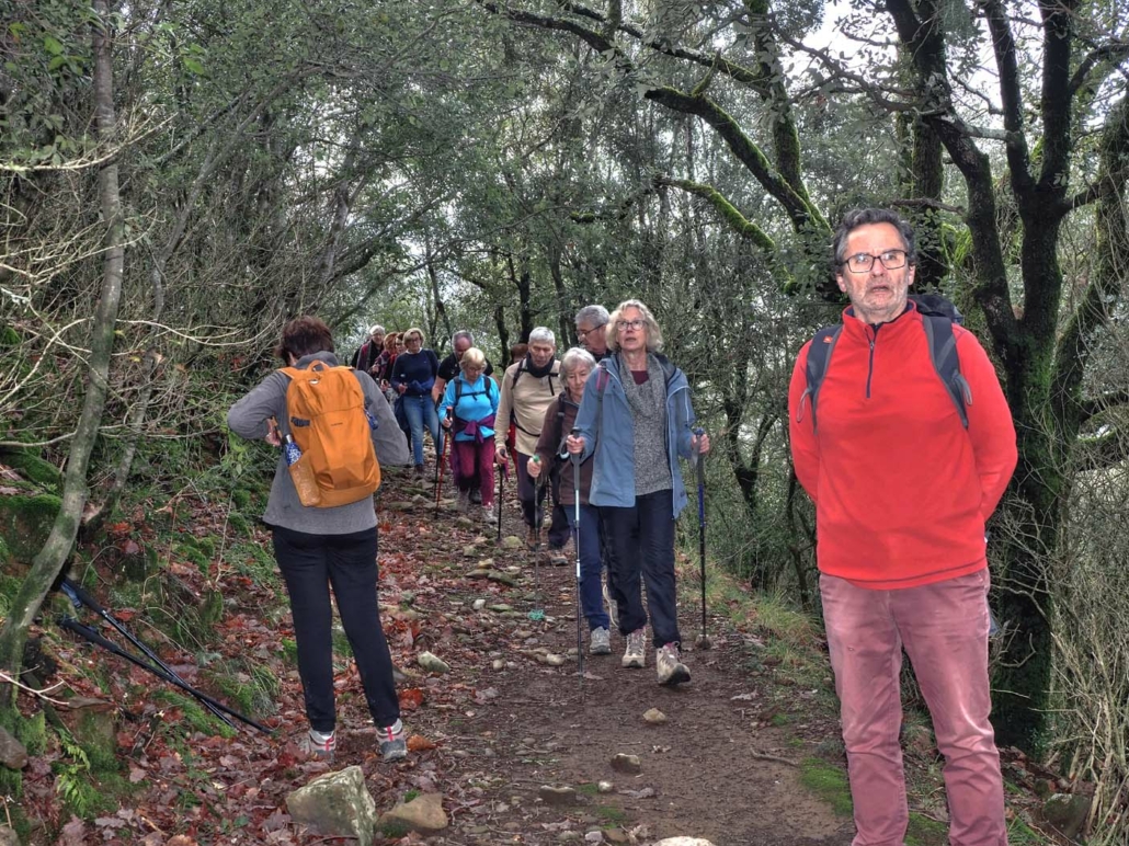 Mardi 28 octobre 2025, 17 marcheurs pour cette journée un peu spéciale, avec 2 marches au programme. Départ de Ganges, sur la voie verte qui arrive de Quissac et qui continue jusqu’à Sumène. Pour la première partie, sur la voie verte jusqu’à Sumène, nous restons ensembles et arrivons à côté de l’ancienne gare où 2 tables nous attendent pour le pique nique, sous un beau soleil d’automne.