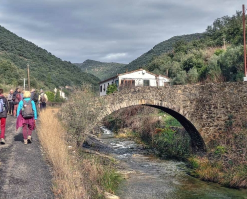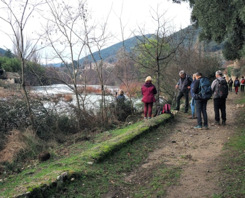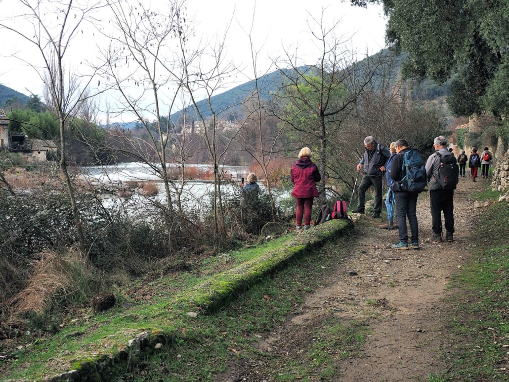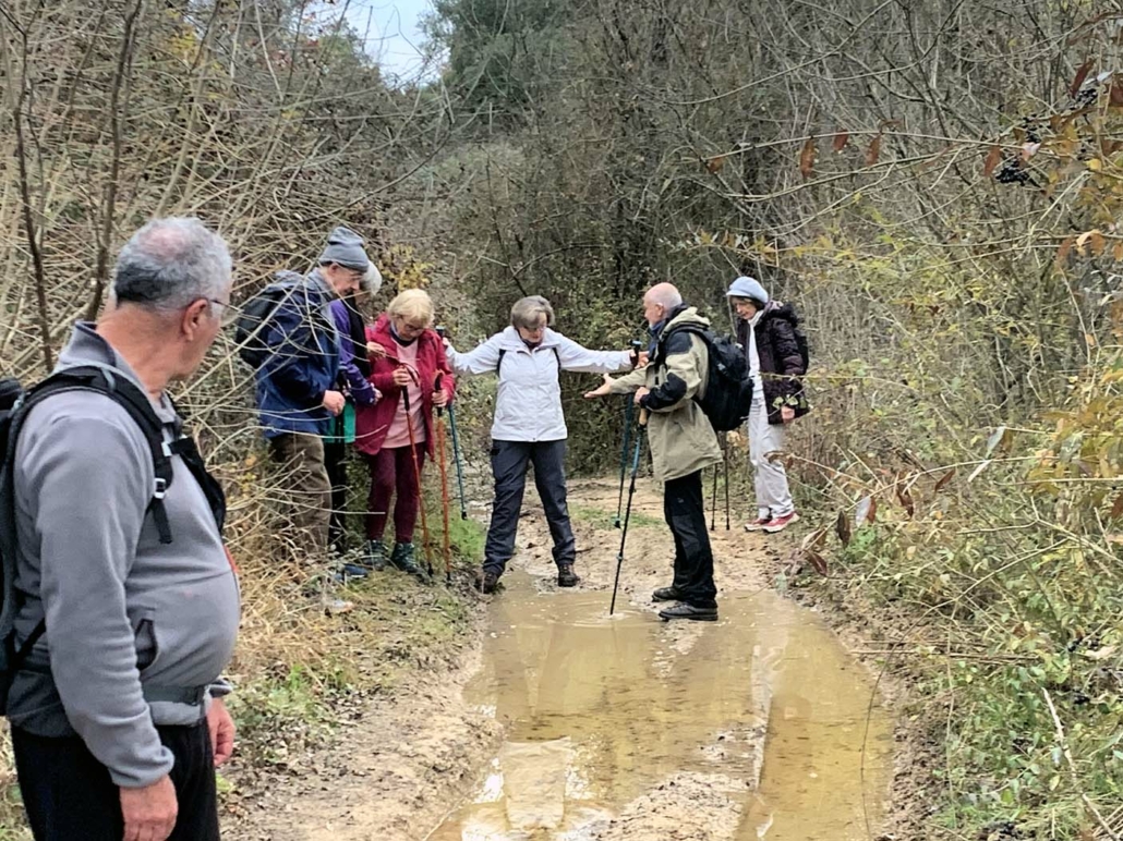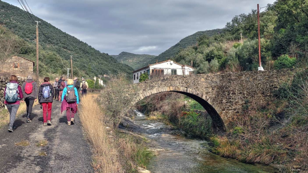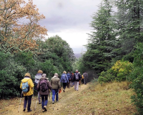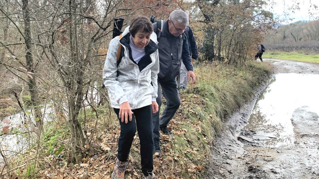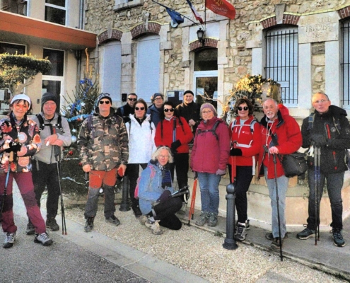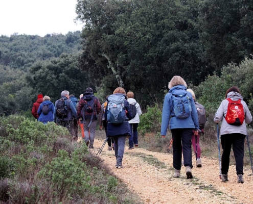 Mardi 28 octobre 2025, 17 marcheurs pour cette journée un peu spéciale, avec 2 marches au programme. Départ de Ganges, sur la voie verte qui arrive de Quissac et qui continue jusqu’à Sumène. Pour la première partie, sur la voie verte jusqu’à Sumène, nous restons ensembles et arrivons à côté de l’ancienne gare où 2 tables nous attendent pour le pique nique, sous un beau soleil d’automne.
