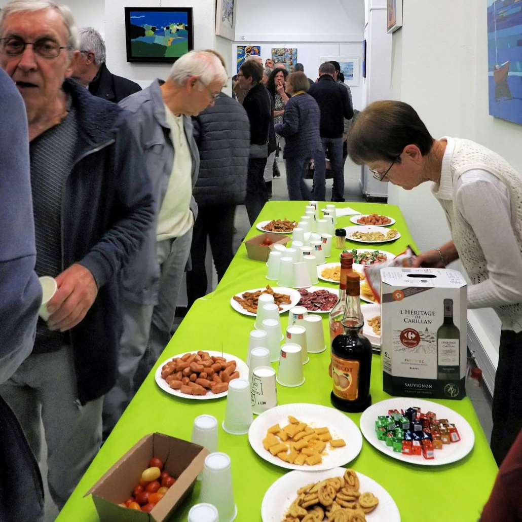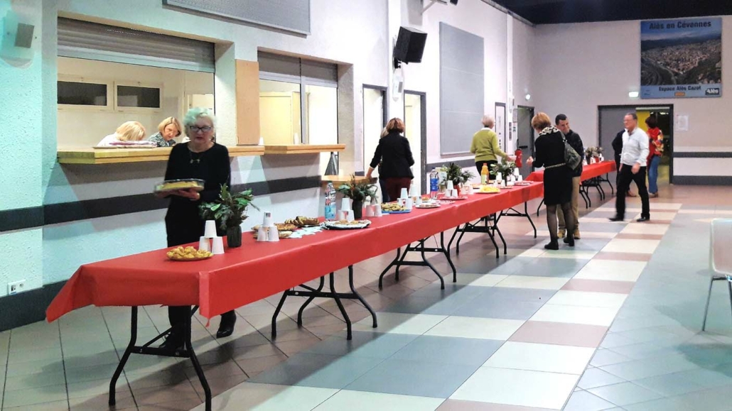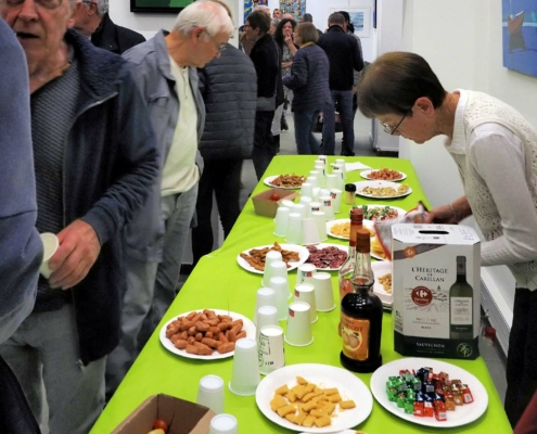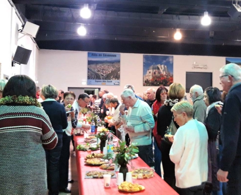 Pour finir la soirée : apéritif dinatoire avec les plats salés et sucrés amenés par tous les participants, échanges et discussions autour du verre dev l’amitié .