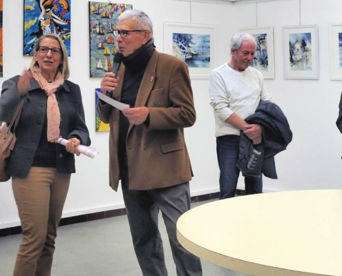 Mardi 4 novembre 2025 à 18H30, Espace Chamson à Alès, se tenait le vernissage de l’exposition par les artistes Cévenols de leurs œuvres, exposition ouverte le lundi 27 octobre et qui le restera jusqu’au vendredi 7 novembre. Beaucoup de monde ce soir là et la présence de Madame Régine Benoît, directrice de l’Espace Chamson et de Monsieur Gérard Palmier, adjoint au Maire d’Alès. Après une allocution de Meur Palmier, Bernard Villaret, notre responsable, a présenté les 8 exposants ainsi que leurs œuvres : Christine Boyer, Pierre Corbani, Guy Covelli, Sylvie Lennon, Chantal Lore, Sylvie Marc, Béatrice Migliore et Alain Portales.