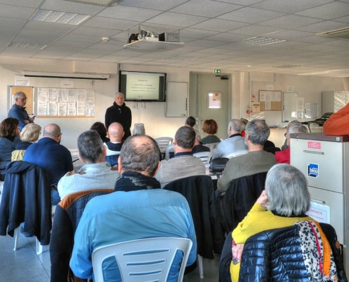 Après l’allocution de soutien de Mmes Magne et Peyric, notre responsable, Bernard Villaret, a fait le point sur les actions en cours et les perspectives d’évolution du club, de la poursuite des interventions du club auprès des écoles ou des entreprises. Vint ensuite les gratifications pour les 40 bénévoles qui assurent le bon fonctionnement du club.